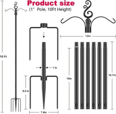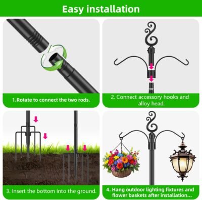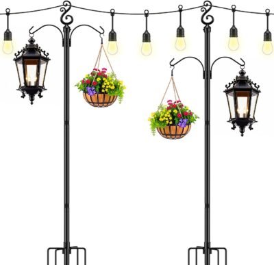 Quality Material – These light string poles are made of heavy metal and coated with black outdoor waterproof and rustproof coating, which can withstand sun, rain, wind and snow and will not break easily.