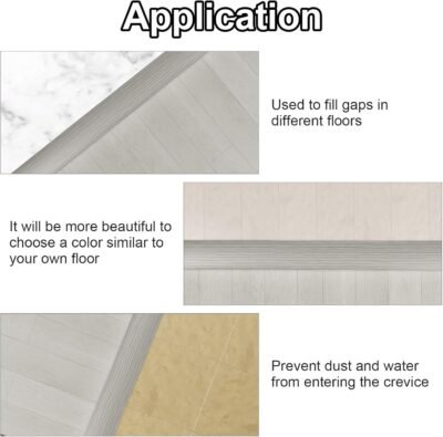 [Multi-functional]: Self-adhesive PVC floor transition belt is very suitable for covering floor tile gaps. The covering gap between the two floor surfaces of the bedroom, living room, kitchen and shower, as well as the separation layer of the living room and kitchen transition area can be covered and beautified. Mirror frame decoration, cabinets and background photos with transition band decoration is also a good choice