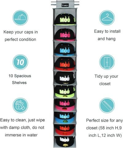 STORE THEM ALL – VAESIDA hat organizer has 10 separate shelves, each specially sized to house your headwear. Keep your entire hat collection stored safely in one place with the best closet organizers and storage.