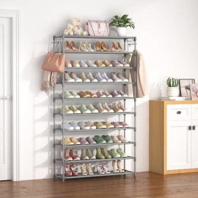 Be the first to review “10 Tiers Shoe Rack 50 Pairs Large Capacity Tall Shoe Organizer Sturdy Shoe Storage with Two Hooks Space Saving Metal Wide Shoe Rack for Closet, Entryway, Bedroom, Grey” Cancel reply