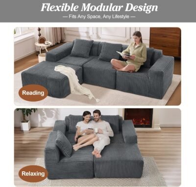 MAKIAAP 101″ Corduroy Memory Foam Modular Sectional Couch with Chaise
