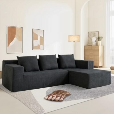 Modular Sectional Sofa: Discover the pleasure of configuring our minimalist modular sofa as you wish! Versatile and highly flexible, this minimalist sectional sofa set is designed to meet your needs. The L-shaped couch optimizes space, especially when placed against a wall. Consisting of two chic pieces, this living room sofa set offer to make your own style and comfort