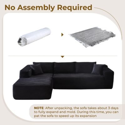 【No Assembly Required】 Embrace the liberation from traditional furniture assembly woes with this modular cloud couch. Effortlessly unpack each component and delicately pat down every section to enhance its buoyancy and plushness, restoring it to its picturesque form. Complete rejuvenation may require up to approximately 72 hours. Revel in the ease of assembly-free bliss