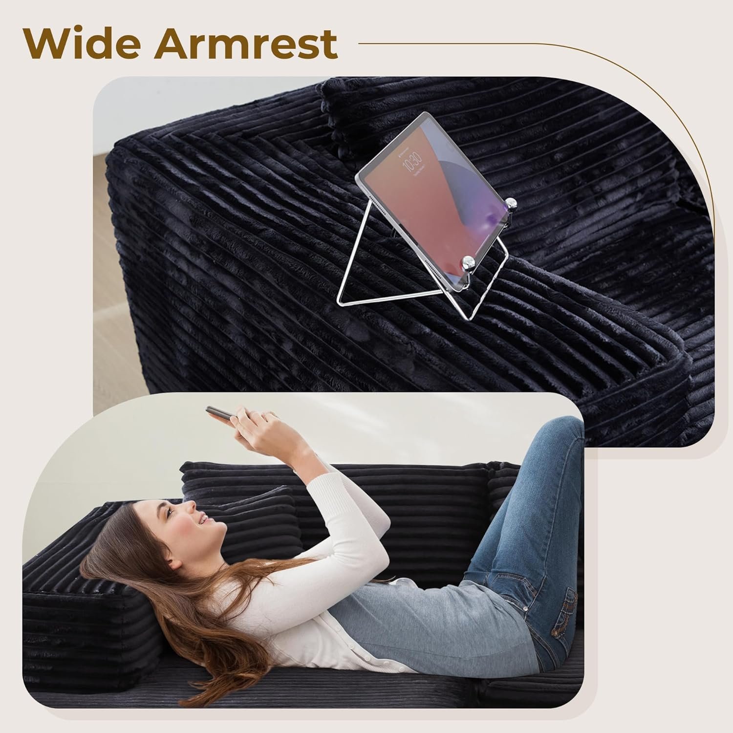 【Premium Fabric】This cloud sofa is available in a variety of fabrics and colours.Upgraded breathable fabric, with its unparalleled softness and warmth, envelops you in a world of luxurious comfort. Its remarkable durability and stain-resistant properties ensure that your sofas and couches always maintains its fresh and vibrant appearance. With a wide range of color options, our corduroy fabric chaise sofa allows you to express your unique personality, infusing your living space with an irresistible charm