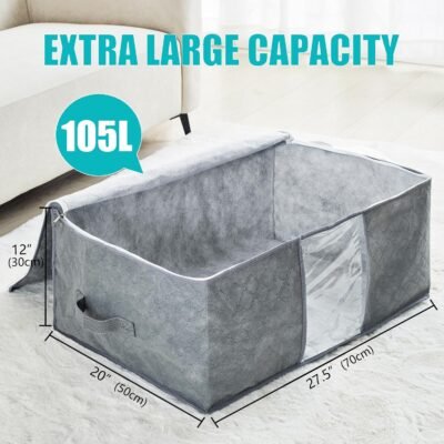 Extra Large Storage Capacity: Measuring 27.5″ (L) x 12″ (W) x 20″ (H), this 105L Large storage bag offers ample space to store oversized comforters, bedding sets, blankets, pillows, seasonal clothing, plush toys, sweaters, and other soft items. Its roomy design keeps your belongings neatly organized.