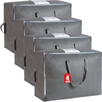 Be the first to review “105L Extra Large Storage Bags for Blankets, King Comforters, Bedding, Clothes, Pillows, Sheets – Closet Organizers and Storage with 4 Handles & Clear Window, Foldable & Breathable (Grey, 4pack)” Cancel reply