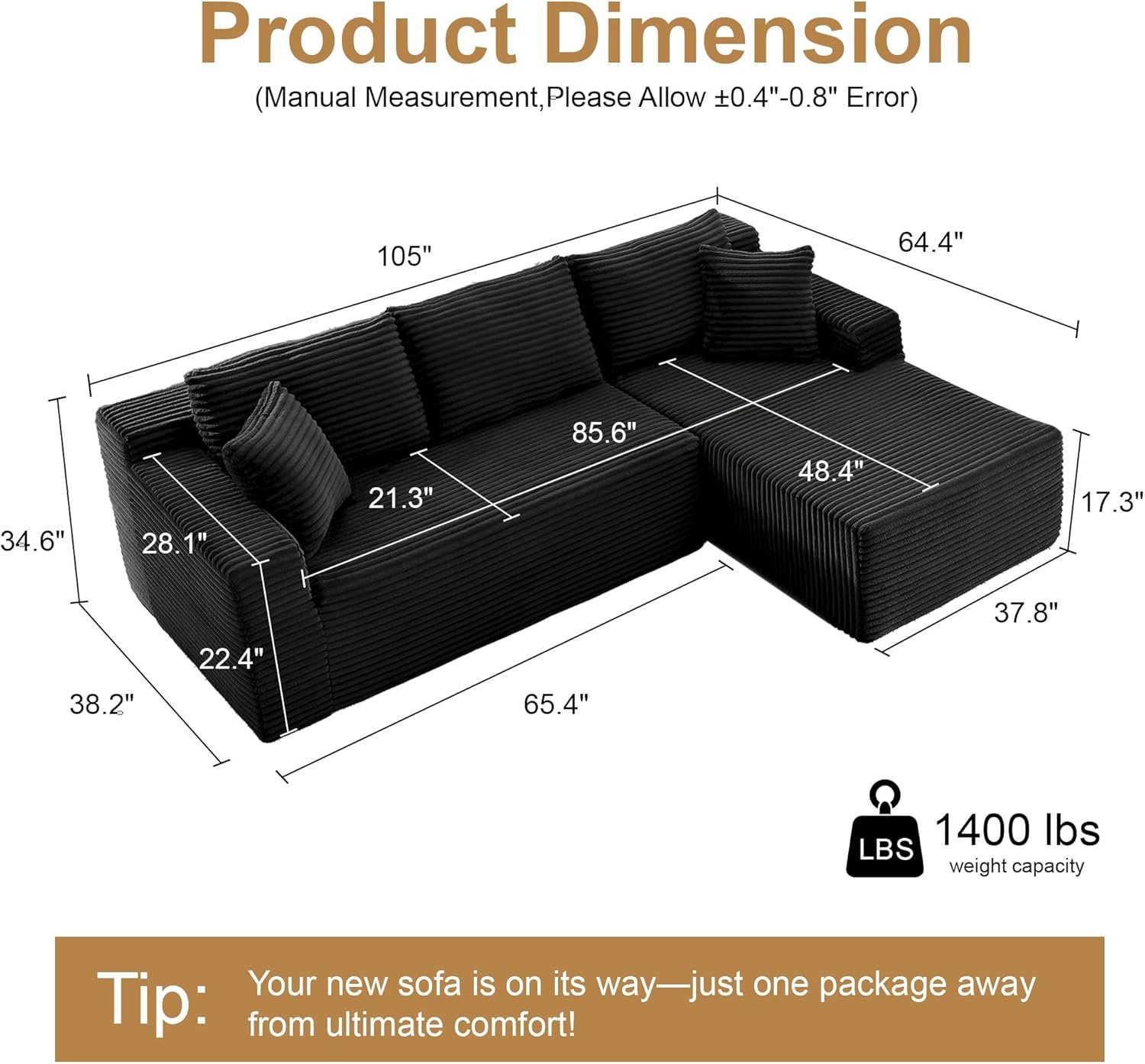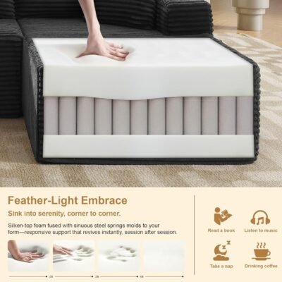 Premium Corduroy Fabric:Our modular sectional sofa is made of high quality corduroy fabric, as smooth as silk, both warm texture and elegant luster. Every touch is a gentle comfort to the body and mind, making home life more exquisite style.