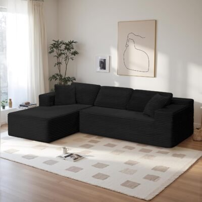 【Soft Corduroy Fabric】Our Sectional couch sofa uses high-quality corduroy, which is soft and has a velvet like softness. The high elastic memory foam has just the right elasticity and can provide lasting comfort. The anti slip design at the bottom ensures the stability of the sofa