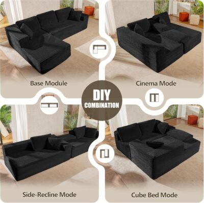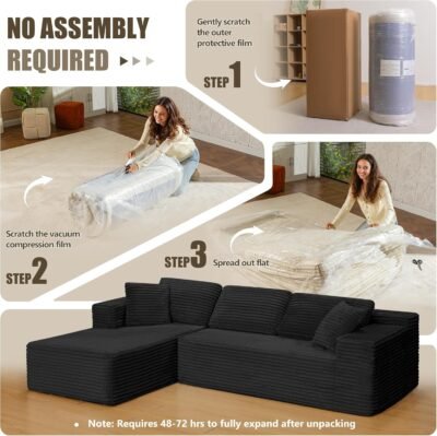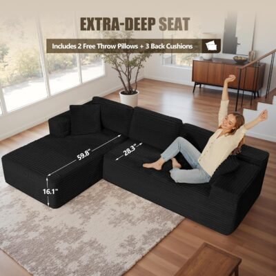 ovios 104″ Cloud Sectional Couch with L-Shape Chaise,Modern Modular Sofa with Deep Seat, Upholstered Couches for Living Room Bedroom,No Assembly Required, Black (Plush Corduroy Fabric)
