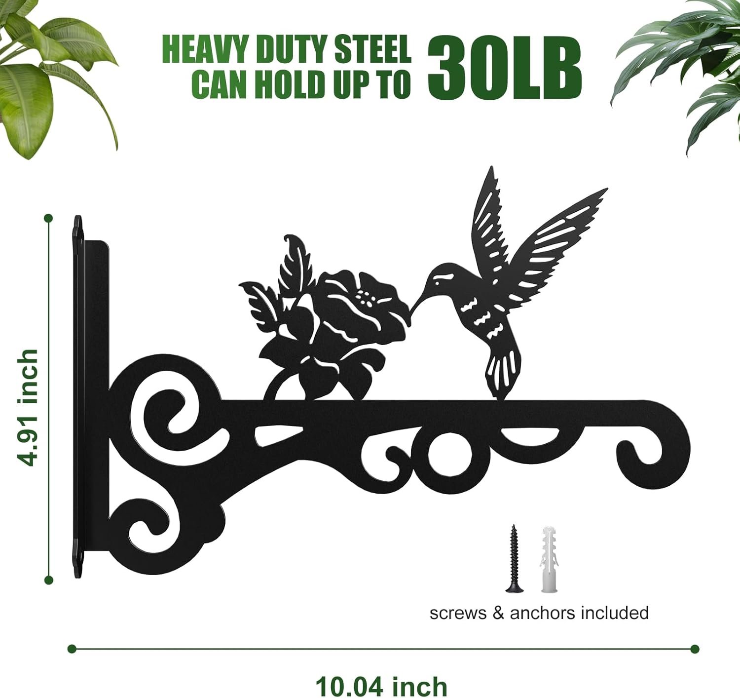 ROBUST AND ANTI-RUST – Crafted from heavy-duty iron, our 10-inch hanging plant bracket features an 2 mm thick body, can hold up to 30 lb . The anti-rust coating ensures long-lasting durability, making it ideal for both window plant hanger indoor and plant hangers outdoor.