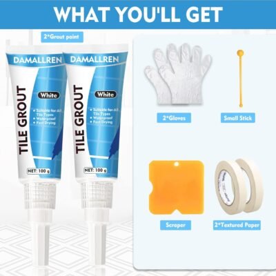 Waterproof – Our white grout is made with a water-resistant formula not only protects joints from moisture, is perfect for renewing kitchen and bathroom floors, and walls, but also gives all your bathroom, and kitchen surfaces, tile floors, countertops, or walls a fresh look. Tile grout repair kits are ideal for unventilated places.
