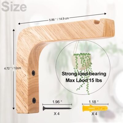 🌷【Multi-Purpose】This wooden bracket and wall hook that can be used to fix hanging planters, And is great for hanging lanterns, baskets, flowerpots, string lights, wind chimes, ornaments, and more. Adding elegance and beauty to your home