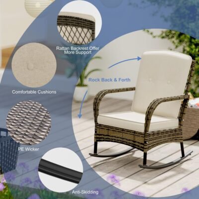 Safe and Smooth Rocking: The patio rocking chair features an anti-tipping knob and rubber strip that provides a soothing motion for you to enjoy