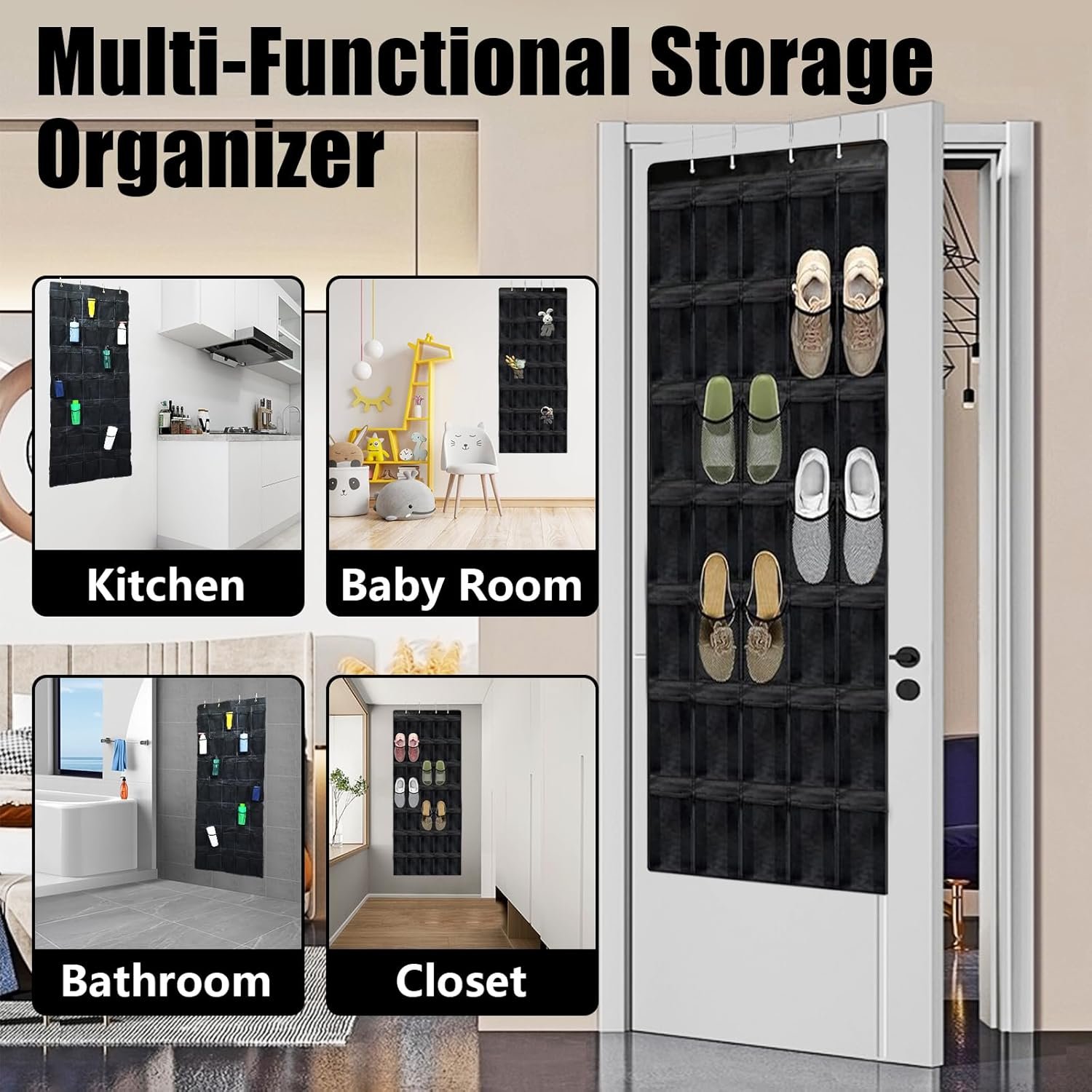 Multi-Purpose Use: Beyond shoes, this shoe organizer hanging can store a variety of items, from accessories, kitchen utensils and cleaning supplies.