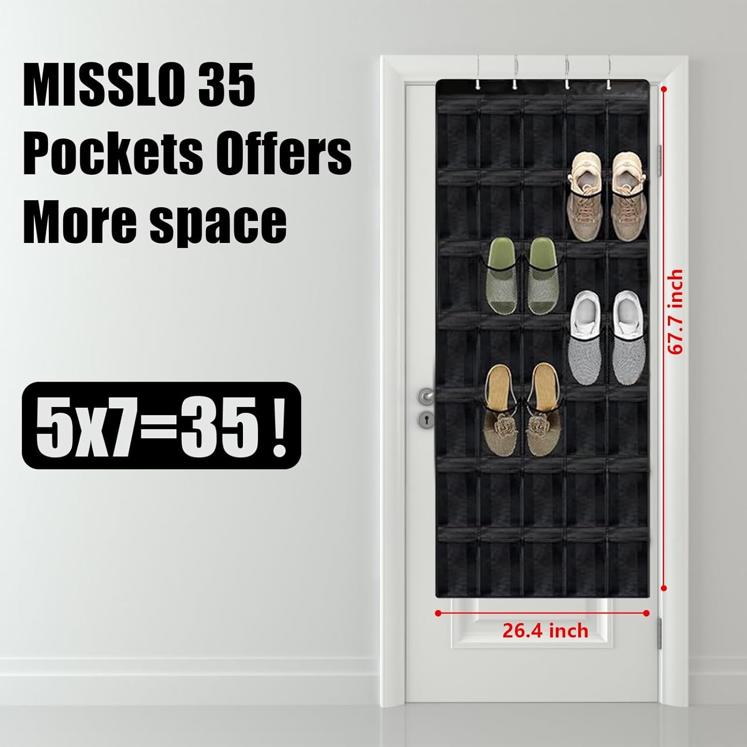 [35 POCKET DESIGN FOR ULTIMATE ORGANIZATION] – This over the door shoe organizer offers 35 large capacity pockets, perfect for storing shoes, boots, sandals, and more. Keep your entryway, closet, or bedroom neat and clutter-free!