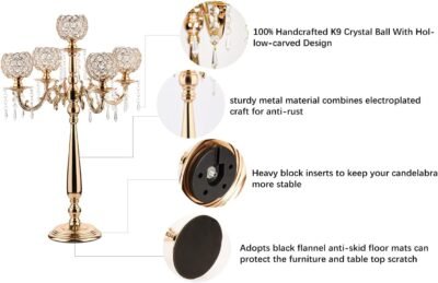 💖 MORE SAFETY:This pillar candle holders designed with crystal beads and all-metal welded structure. The base through pressure casting, burnish, electroplating, polishing ect. many technological processes strengthen the property of anticorrosion and rust prevention.No need to worry about the danger of candlestick holders being broken accidentally.
