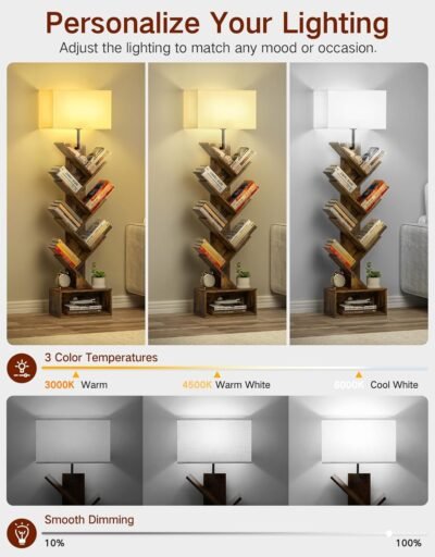 All-Day Adaptive Lighting: We’ve upgraded a classic bookshelf into a multifunctional floor lamp, combining style, storage, and smart lighting in one. Enjoy customizable illumination with 3 color temperatures (Warm, Cool White, and Daylight) and stepless brightness from 10% to 100%. Whether you’re reading, working, or relaxing, this lamp offers the perfect light for any mood. The bookshelf lamp built with an anti-glare white lampshade, ensures soft, eye-friendly illumination for comfort at any time of day.