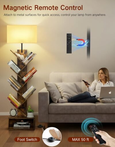 Effortlessly Control Your Lamp with the Remote Control and Foot Switch: Adjust lighting modes, brightness, or set the 1-hour timer without bending down. The memory function remembers your last light settings, so you don’t have to adjust the floor lamp with shelves every time. The 1-hour timer ensures auto shut-off, making it perfect for winding down before bed or for a convenient “set-it-and-forget-it” experience. Comes with a long-lasting 12W LED bulb rated for up to 25,000 hours of bright, reliable light.