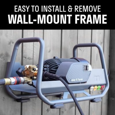 Keep your workspace clutter-free with the Active 2.3 Electric Pressure Washer’s innovative wall-mount frame. Designed for easy installation and removal, this feature allows you to securely store your pressure washer off the ground, maximizing your area while ensuring easy access. Perfect for those with limited storage space or who prefer an organized environment, the Active 2.3’s wall-mount capability transforms convenience in maintenance and storage.