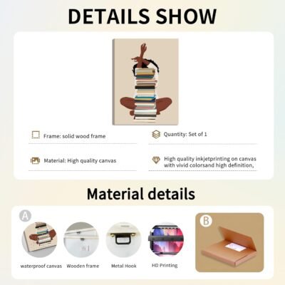 【Book Lover Painting Wall Art】: This unique black female wall art showcases modern women immersed in books, seamlessly blending literature and art. Whether you’re seeking abstract wall art, cultural wall art, or modern canvas wall art, this diverse canvas wall art meets your needs.