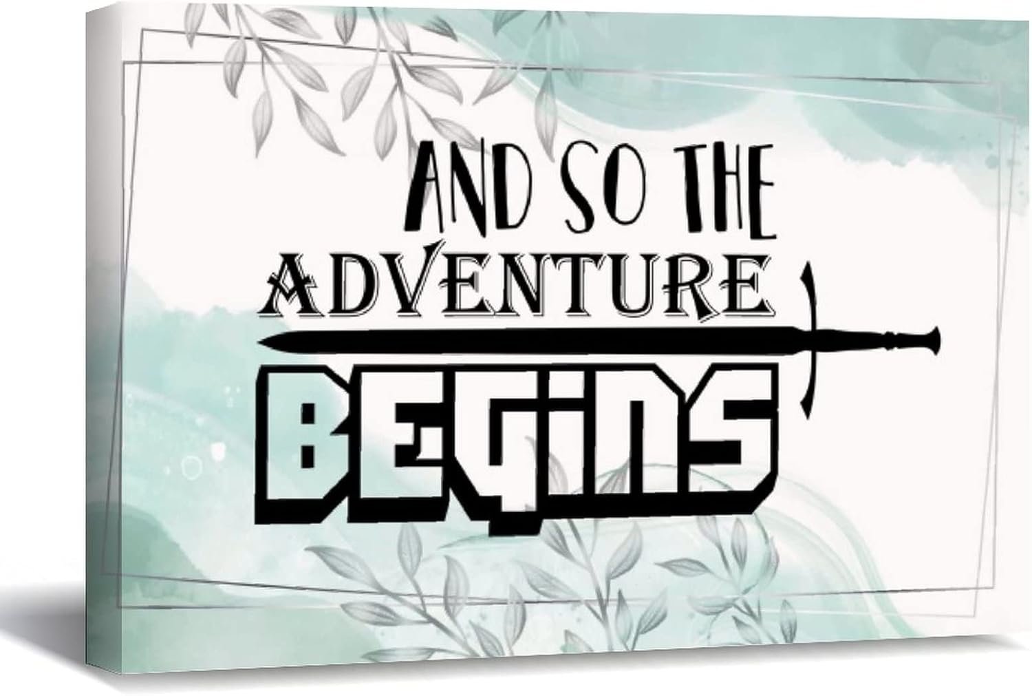 Canvas Hanging Wall Art Poster with Motivational Quote, Painting Farmhouse Home Wall Decor for Bedroom Bathroom, Wedding Gift, 16×24 Inch, And So The Adventure Begins