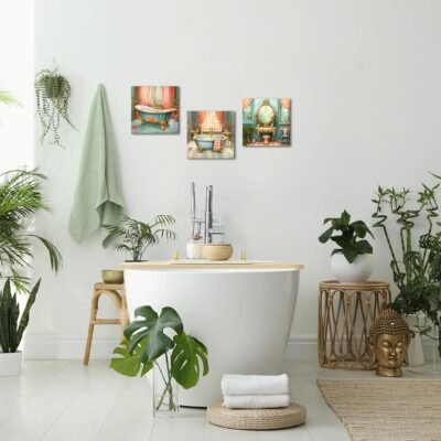 High-Quality Canvas Prints: Enjoy the sharp, high-definition quality of Giclee artwork with these bathroom wall decor. The waterproof canvas, combined with premium, fade-resistant ink, ensures lasting beauty and safety for home environments