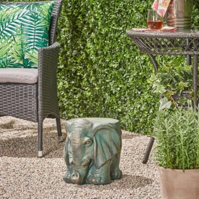 Why settle for a garden stool that doesn’t gaze back at you? This appealing and quirky elephant garden stool lends a playful flair to your porch, patio, or yard and boasts a vintage vibe. Includes: One (1) Elephant Garden Stool Material: Lightweight Concrete Color: Copper Patina Finish Hand-Crafted Details No Assembly Required Product Dimensions: 13. 25 inches deep x 11. 25 inches wide x 12. 50 inches high