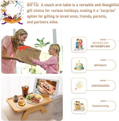 ✅Make Life Easier – The couch arm table tray easy access to remote control, drinks, snacks, phone, etc., very suitable for people who don’t want to move around. Can be as a drink side table,eating on the couch,arm tray table for sofa,computer table for couch,trayable couch companion.