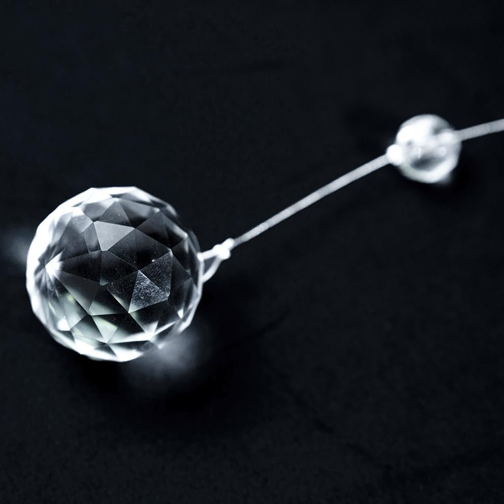 Material: K9 glass crystal , Stainless steel wire rope;The diameter of the bead is 12mm and the pendant is 30mm.The crystal beads and pendant with many sections, will reflect the color of rainbow under the sun.