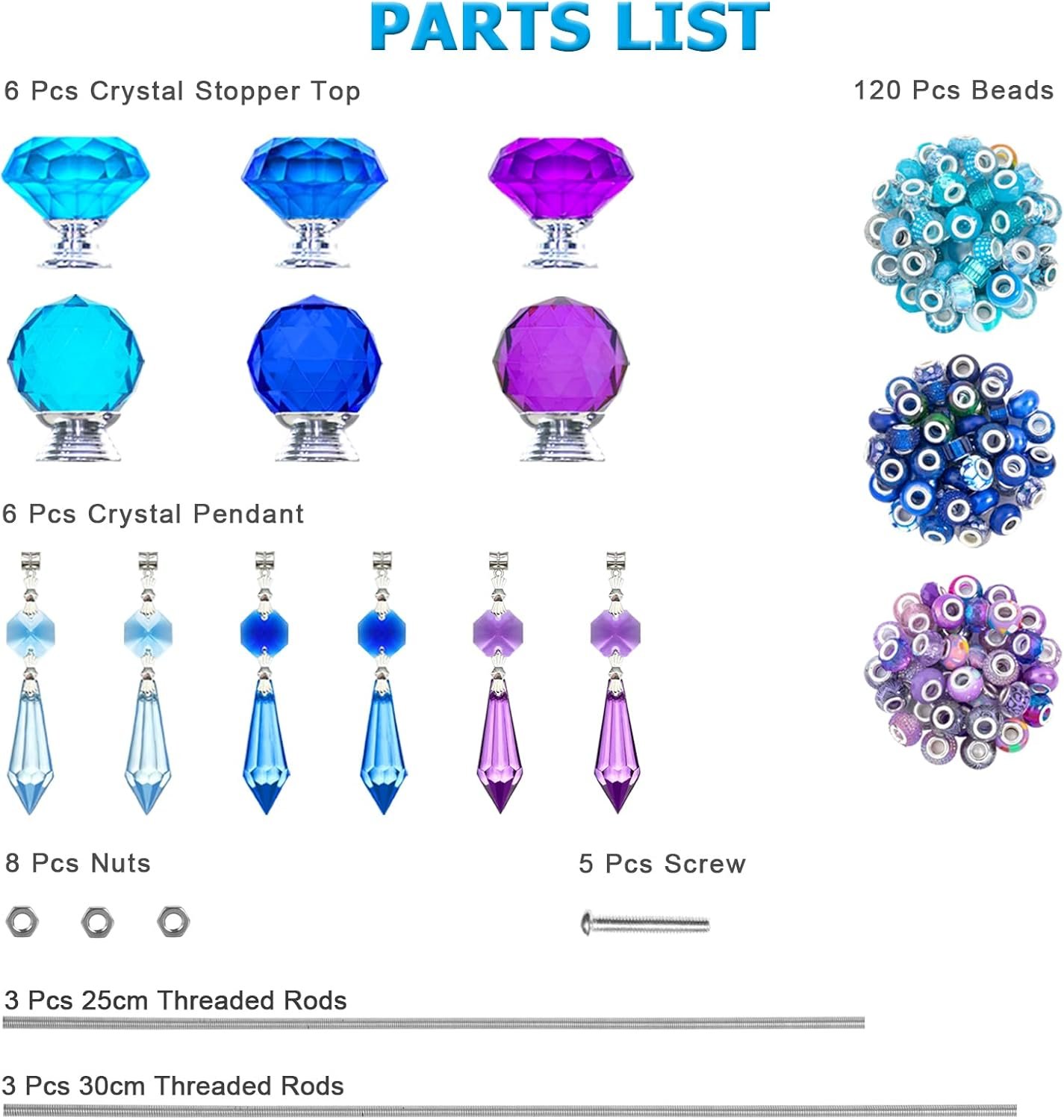 150 PCS Beaded Garden Stakes Kit, DIY Fairy Wand Garden Stake Beads Kits with Assortment Large Hole Beads 6 Crystal Stopper Top Threaded Rods and Sparkling Crystal Pendants for outdoor indoor Decor