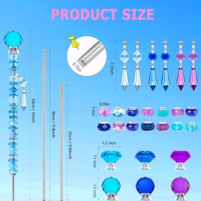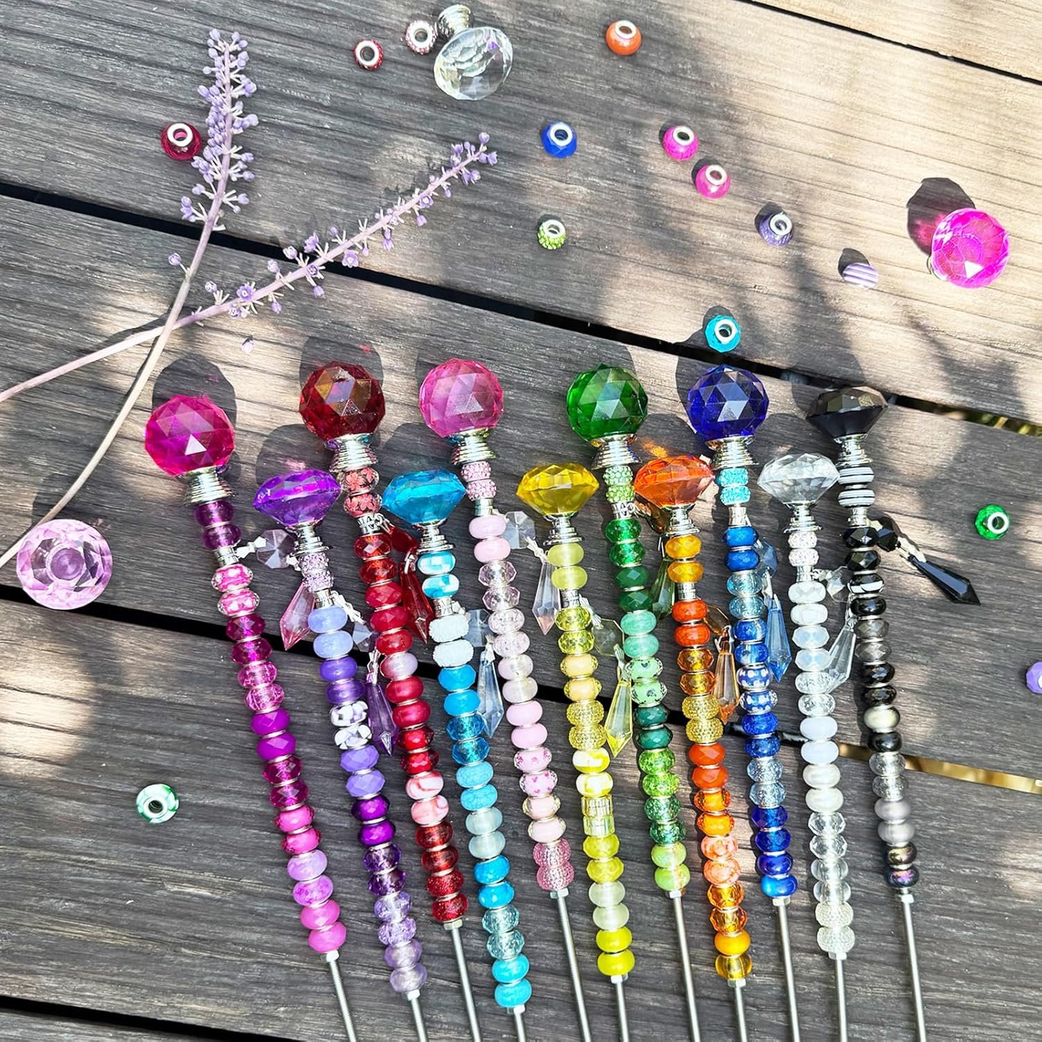【Easy to Use】DIY Fairy Wand Garden Stake Beads Kit, Easy to install without tools, screw the top of the Crystal Diamond Stopper onto the threaded rod, add beads and other decorations according to your preferences and creative needs, and finally secure with nuts. This unique fairy wand is complete and can be inserted into your garden, potted plants, or any other place you think is suitable