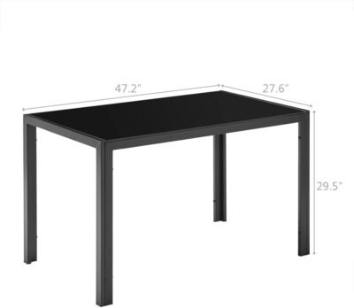 FCH Black Glass Table with Tempered Glass Top, Rectangular Dining Table Set for 4, Place Saving for Apartments & Small Places, for Home & Kitchen & Dining Room, 47″, Black