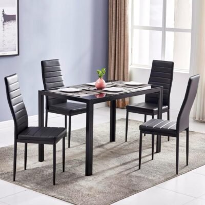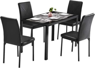FDW Dining Table Set Glass Dining Room Table Set for Small Spaces Kitchen Table and Chairs for 4 Table with Chairs Home Furniture Rectangular Modern (Black Glass)