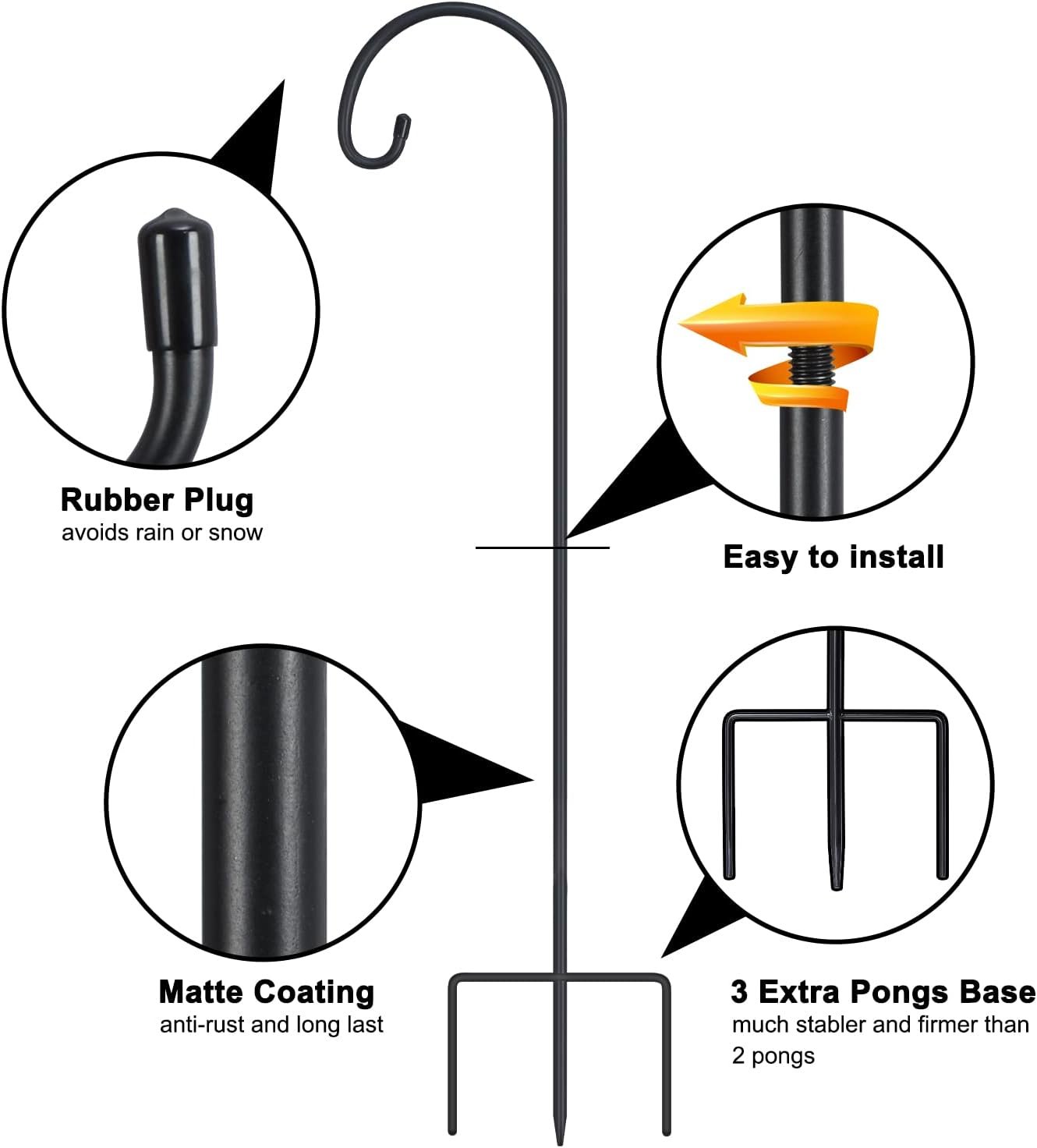 【3 Base Prongs】This shephards hook has 3 long prongs at the bottom for better grip. Compared with ordinary 2 prongs products, it has higher stability and firmness. Even in bad weather, it can still stand upright and is not easy to fall down. We have thickened the metal pole, which not only increases the maximum bearing capacity, but also extends its service life.