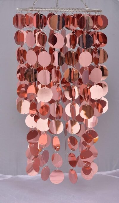 Shiny, sparkling sequin circles are everyone’s favorite! Considered an emblem of a Dashing Diva, shimmering spangles have always been highly admired and desired by all fashionistas out there. Create your style statement too with these stunning spangles circles chandeliers that have most remarkable glitz and most extravagant elegance. Crafted from shiny PVC plastic, these shimmering circles have a modish metallic glint that looks super classy when coupled with our other sequin accented accessories; like sequin backdrop curtain, sequined table covers and table skirts, sequined napkins and so much more. Attached to a sleek metal ring the sparkling spangles strands dangle mesmerizingly like a dazzling Diva’s earrings, enticing and luring the guests with their unsurpassed sheen and awe-inspiring opulence. Hang these at the places that call for an extra dose of fun, festivity, and fantasy!