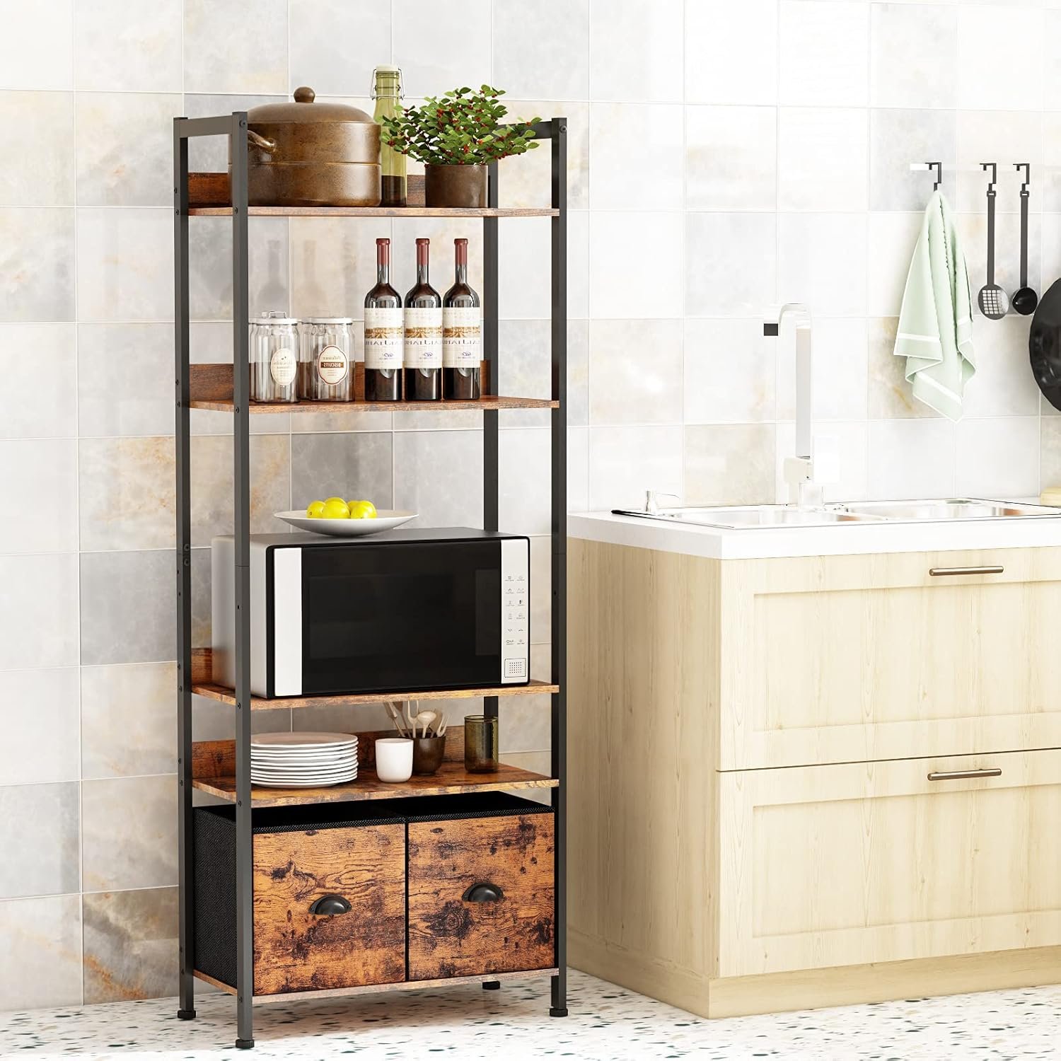 [Bookshelf with 2 Removable Drawers]: The tall bookshelf comes with 2 removable fabrics drawers, provides more storage space for toys, books and other small items. Drawer size is 11″L x 11″ W x 11″H, same as the standard small storage box, placing it in storage shelves, closet for storage as you like. The drawer has a wide range of usage.