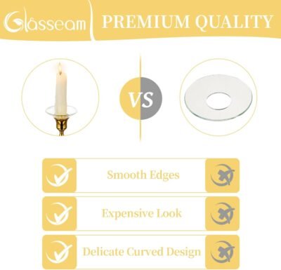 Small Glass Candle Bobeches: Diameter is 2.75 inch, the center hole is the perfect fit to slide neatly over a 7/8″ tapered candle. Quality and quantity of bulk glass bobeches at a fair price.Suitable for taper candle holder, candelabra candle holder, and candle chandelier.