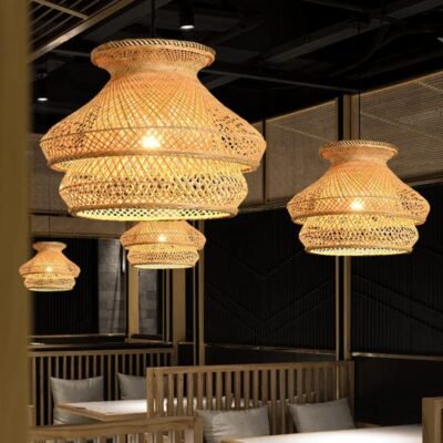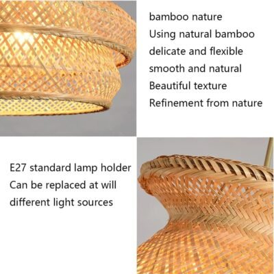 Hand Braided Lampshade: Handwoven bamboo lampshade. Bamboo and rattan . Hardware materials and wooden decorative chandeliers perfectly create a pastoral style. Wicker and bamboo strip designs make this lantern wicker an elegant choice.