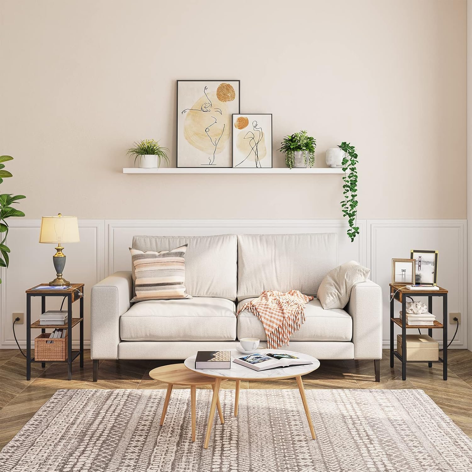 Firm and Stable: The steadiness of this industrial end table comes with solid matte black metal legs and shelves. 4 adjustable feet support the balance of this side table on uneven ground and protection from scratch on the floor