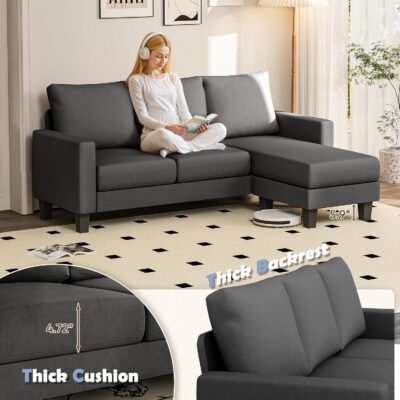 EASY TO CLEAN: The cover of cushions is removable. The bottom of couch is easy to keep clean with 5.9 inch leg