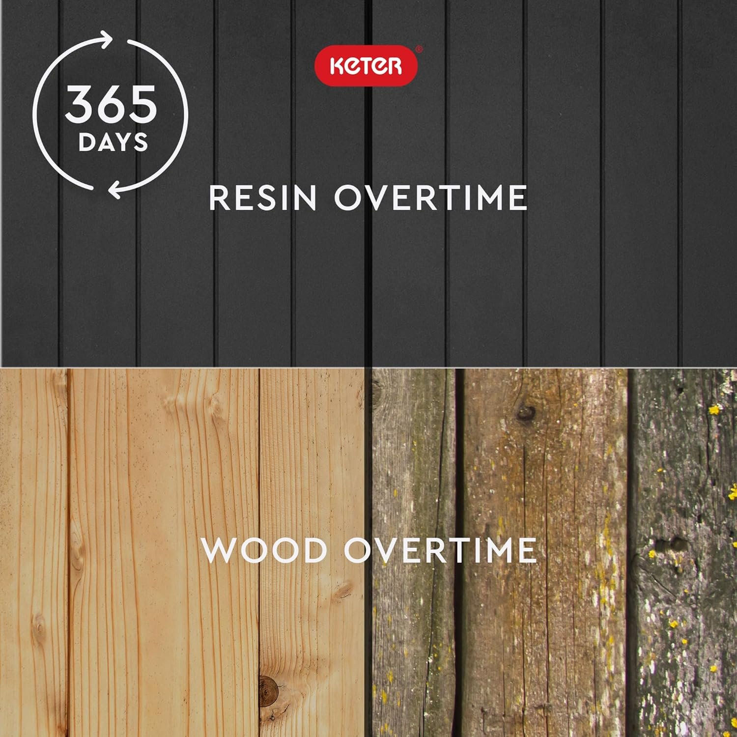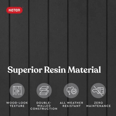 RESIN CONSTRUCTION: It’s made out of all weather-resistant resin with an appealing wood-look texture