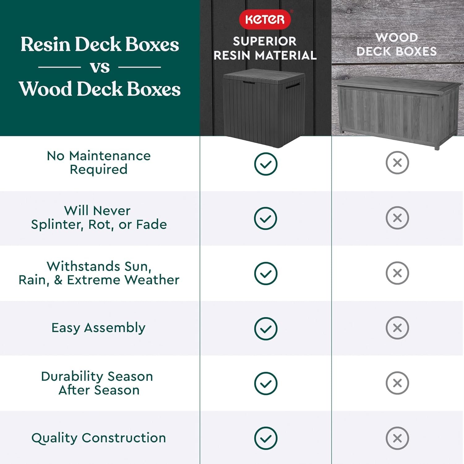Home Outdoor & Backyard Decor Keter City 30 Gallon Resin Outdoor Storage Box and Patio Storage Box Side Table for Pool and Garden Accessories, Dark Grey