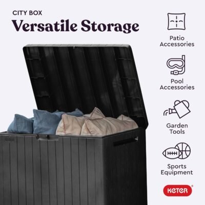 Be the first to review “Keter City 30 Gallon Resin Outdoor Storage Box and Patio Storage Box Side Table for Pool and Garden Accessories, Dark Grey” Cancel reply