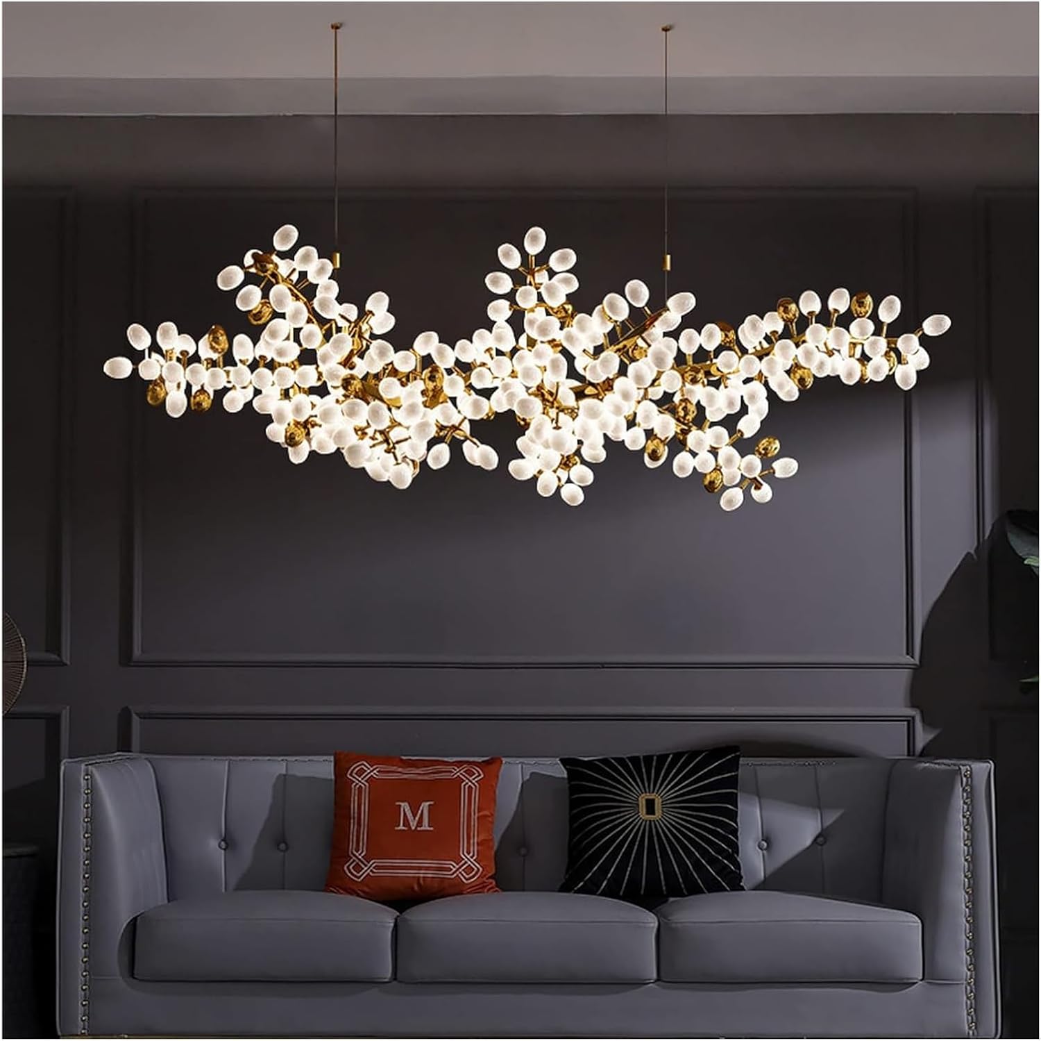 Grapes ChandelierAs beautiful and delicate as nature itself, the branch chandelier carries a romantic and whimsical sense of detail. The glass raindrops on the branches flicker like diamonds, making the chandelier as beautiful as an ice tree.