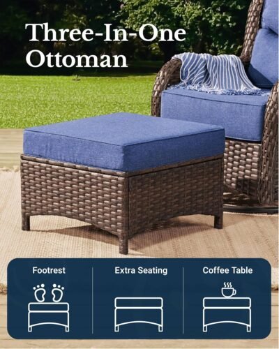 [SMOOTH 360°SWIVEL & GLIDE] – With a smooth 360° swivel of this swivel patio chairs set, you’re free to take in every angle of the surrounding views in your backyard – whether it’s the vibrant blooms, a mountain horizon, or the golden glow of a sunset. Then, with a gentle push, the chair glides back and forth in a soothing rhythm, holding you in plush comfort as you read a book, catch a nap, or hang out with friends over drinks.