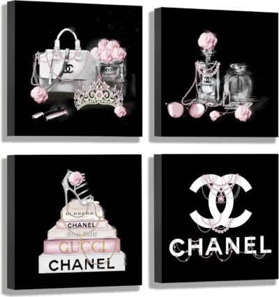 - High Definition modern canvas printing artwork, picture photo printed on quality polyester canvas. This women handbag perfume wall art HD wall art decor painting is 10×10 inch x 4 piece and can be hung directly with the mounting hardware. The wall art is gallery wrapped and comes with mounting hardware.