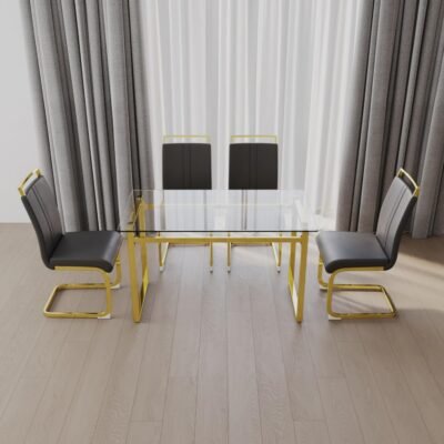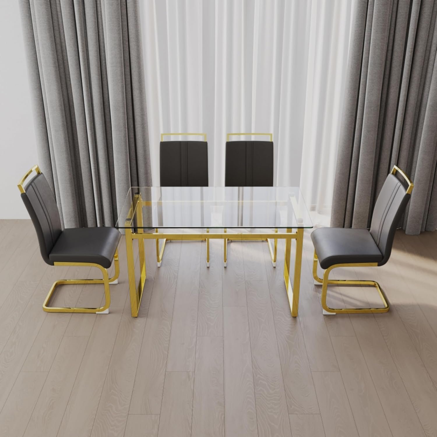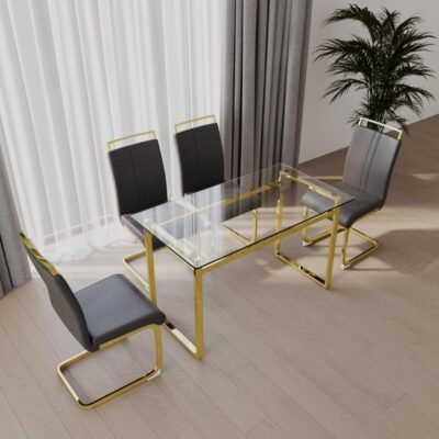 Modern Tempered Glass Dining Table Set with Metal Legs, PU Upholstered Chairs, and Space-Saving Design – Sleek Kitchen Furniture for Small Spaces or Contemporary Dining Rooms
