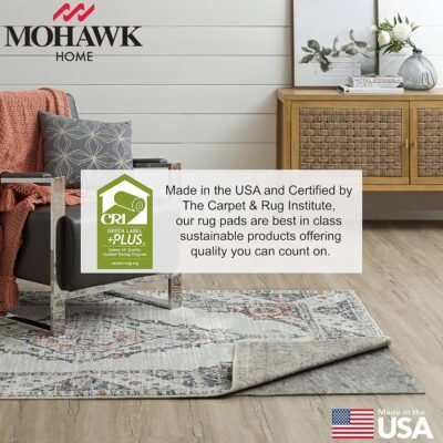 Balancing cushioned comfort and long-lasting protection, the Mohawk Home Dual Surface Rug Pad offers plush cushioning, non-slip grip, insulation, sound absorption, and superior flooring protection that is perfect for busy households. A great choice for all floor types, the durable blended felt fibers and non-slip latex backing is essential to keeping your rug attractive, in place, and your floors damage free. Choose from three thickness options, 1/4″, 3/8”, and 1/2″ for the perfect amount of added area rug cushioning for any space in your home. Available in scatters, runners, and popular sizes such as 5×8, 6×9, and 8×10, this rug pad can also be customized using scissors to fit any size or shape. Our rug pads feature Green Label Plus Certification by The Carpet & Rug Institute, showcasing top quality products with the lowest chemical emissions on the market.