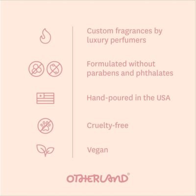 FORMULATION — Get lit responsibly with Otherland jar candles. From our coconut & soy candle wax blend to our cotton candle wick, our vegan candles are formulated by experts to bring safe and effective ingredients into your home for up to 55 hours of burn time.
