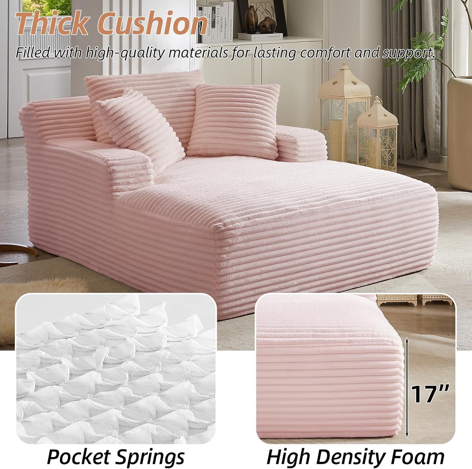 【Modern Style】The chaise lounges comes in a neutral color palette for extra comfort.Its versatile design blends well with European, minimalist or modern décor and ensures comfort without sacrificing aesthetics, making it the perfect addition to any living space.
